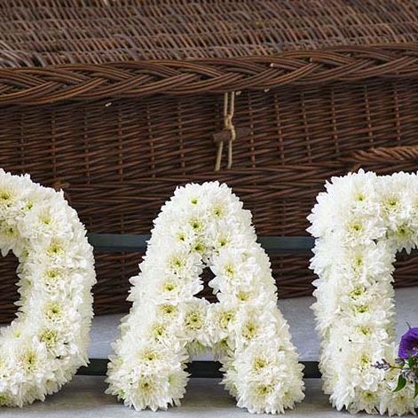 This elegant tribute is crafted using white chrysanthemums, finished with clusters of blue and white blooms in a calssic design.