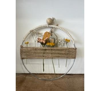 Handmade metal ring decorated with twine and dried flowers, made in Britain by East of India.