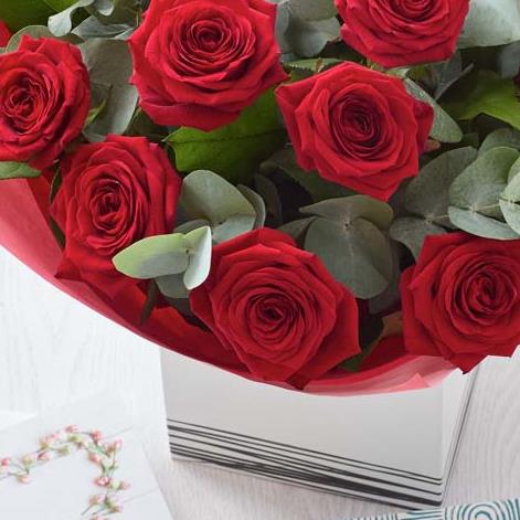 Our artisan florists spiral long-stemmed red roses in the hand to create this magnificent bunch. It's then beautifully wrapped; along with gorgeous chocolates and a delightful greetings card for your message this is a truly magical gift.